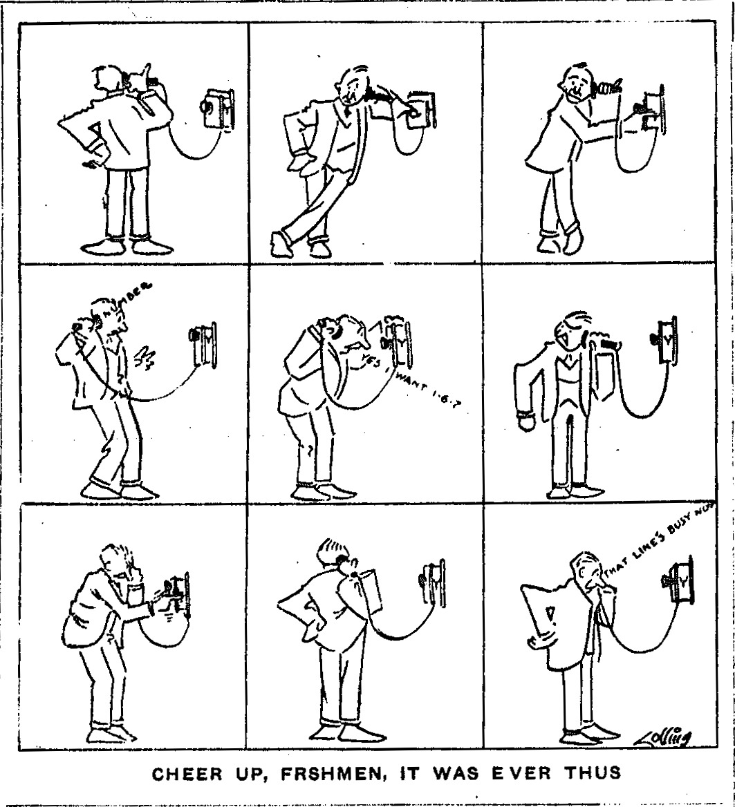 It wouldn’t be long before the telephone lines were upgraded and service was much improved, but in fall 1915, it was the point of contempt for many students.