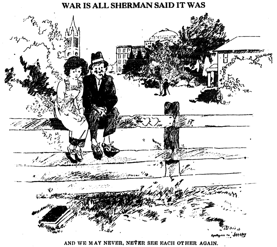 As classes wrapped in 1917, the thoughts of war were on everyone’s mind. The U.S. had only entered the war weeks prior and many people were signing up. The final days of the school year were surely going to be some people’s last time ever on campus.