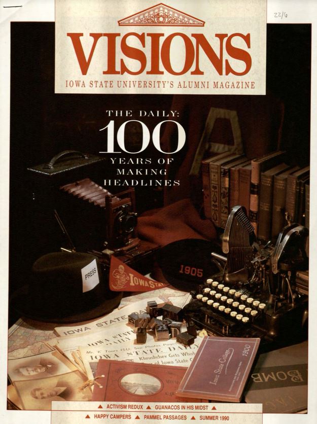 Celebrating the Iowa State Daily‘s centennial, the ISU Alumni Association magazine VISIONS ran a cover story profiling the student newspaper and its century of work in the summer of 1990 (VISIONS, Vol. 3 No. 2). This article and accompanying pieces, which spanned 9 pages, are shared with permission from the ISU Alumni Association.